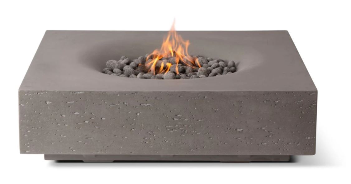 Handcrafted from reinforced concrete with a beautiful Travertine finish, this substantial fire table features a smooth, minimalist square profile and a generous recessed burner bowl. The result is a clean, contemporary look that complements any patio, deck, or backyard setting. • Body construction: Hand Laid reinforced concrete