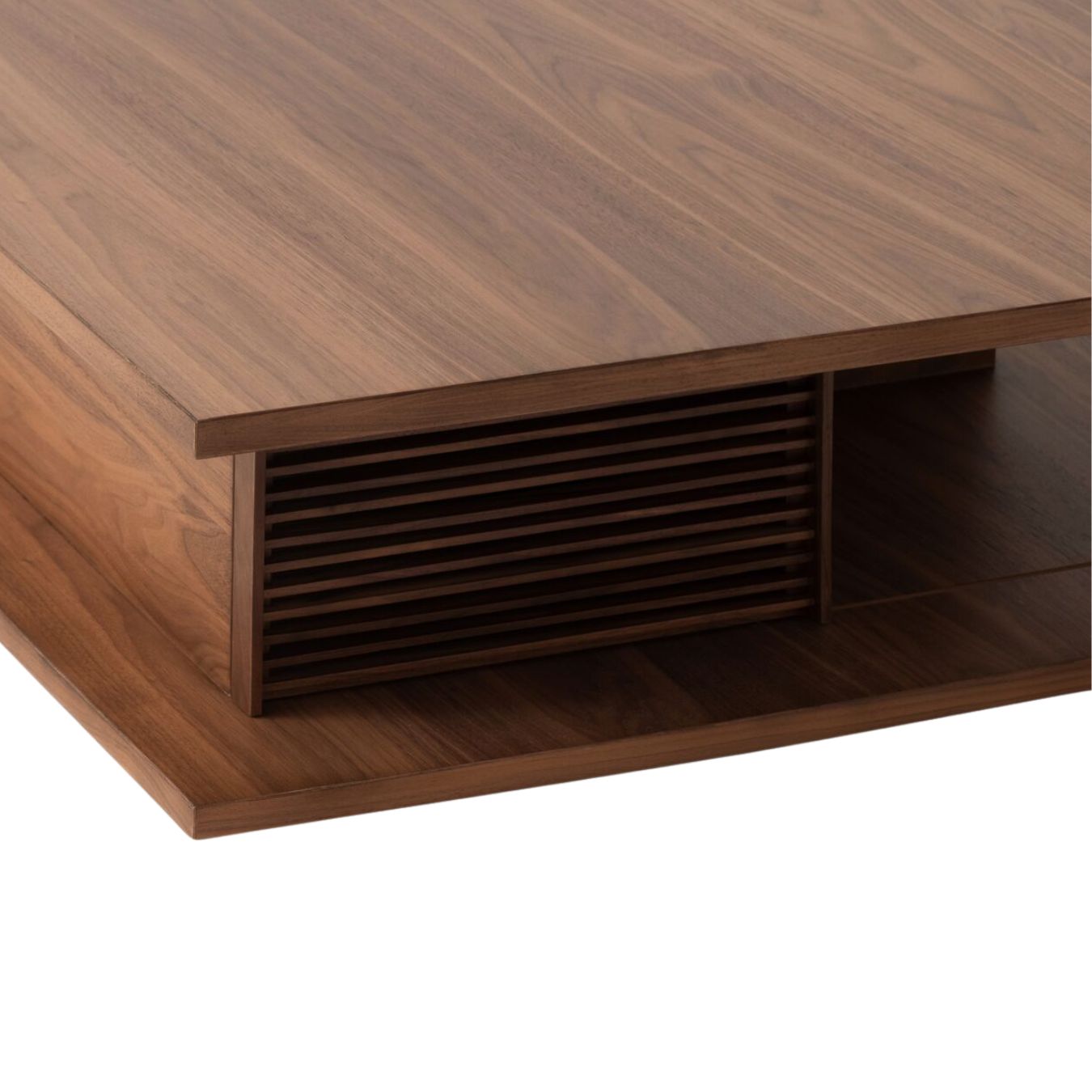 Plank Square Coffee Table w/ Slatted Doors – Walnut